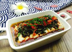 12/15 捞出辣椒放入图9盘里的豆腐块上(如图)。