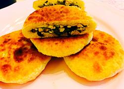3/4 热锅下油,倒下雪菜搅拌的蛋液,不要动20秒后翻一面继续煎20秒